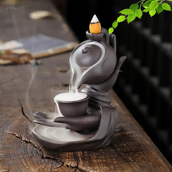 Buddha Hand Lotus Tea Ceremony Backflow Incense Burner - Zen Meditation Decor