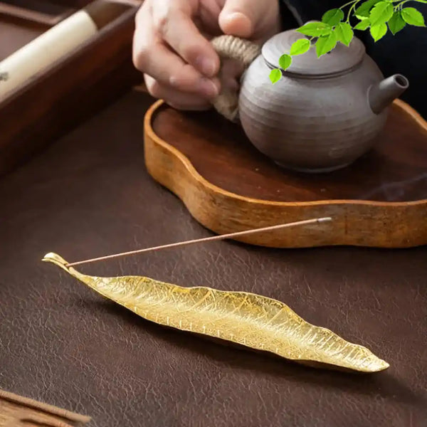 Golden Leaf Incense Holder - Zen-Inspired, Compact & Elegant