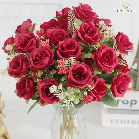 Künstlicher Rosenstrauß aus Seide, Kunstblumen für die Dekoration von Zuhause, Zimmern, Garten, Hochzeiten, Partys, Tischdekoration, DIY-Ornamente