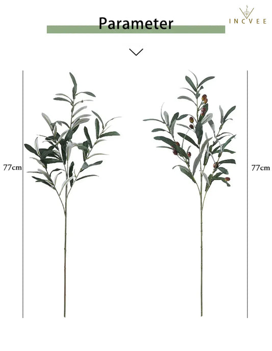 Künstliche Olivenzweige im mediterranen Stil – Blätter und Früchte, 77 cm, Seidenblätter, Vasendekoration