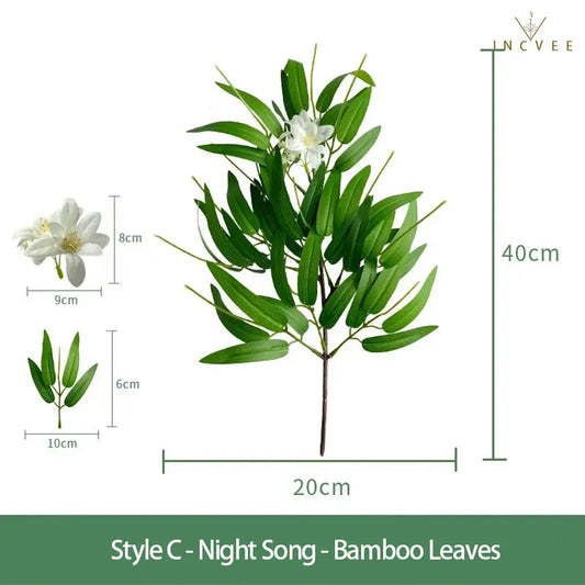 Realistische Bambus-, Weiden-, Pfirsich- und Libellenblätter – künstliches Grün im Zen-Oriental-Stil, lange und kurze Zweige