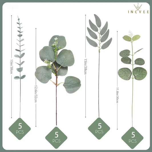 20 künstliche Eukalyptuszweige (gemischt) – 4 Sorten, biegsam, minimalistisch