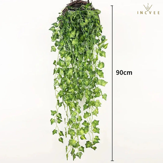 90 cm künstliche Pflanzenranke, hängende Girlande aus Kunststoffblättern und Gras für die Heimdekoration, ideal für Hochzeiten und Partys im Freien, aus künstlichem Rattan