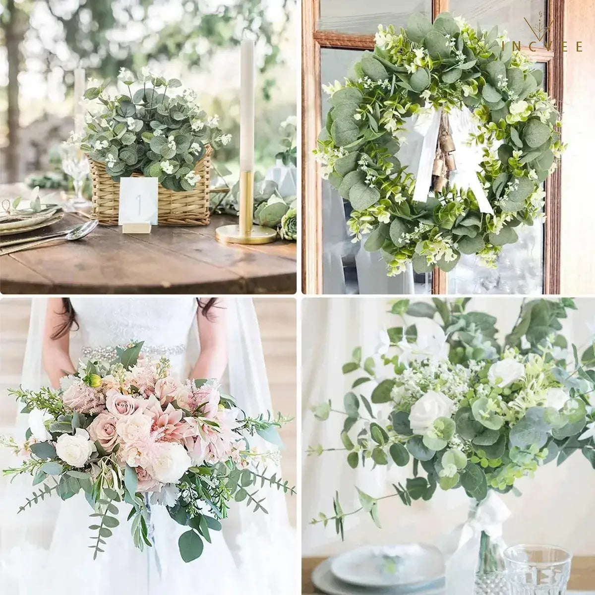 - Eukalyptus-Blütenstile der Serien Bud und Berry → Verleiht botanische Details → Stilvoll gestylte Brautsträuße