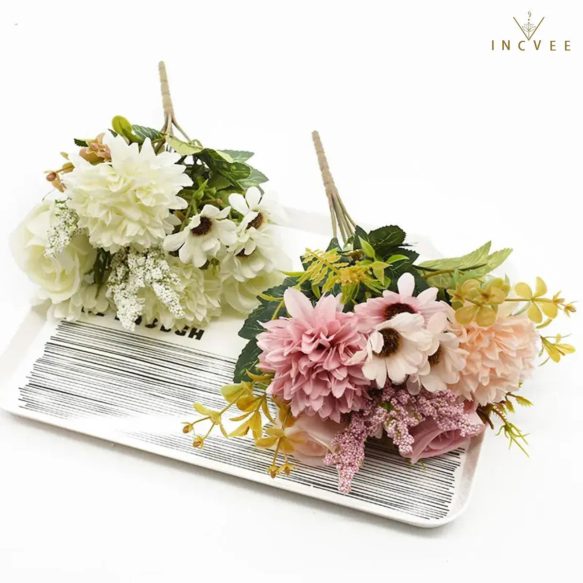 Pflanzenname: Kuratierter künstlicher Blumenstrauß (Rose + Hortensie + Gänseblümchen)