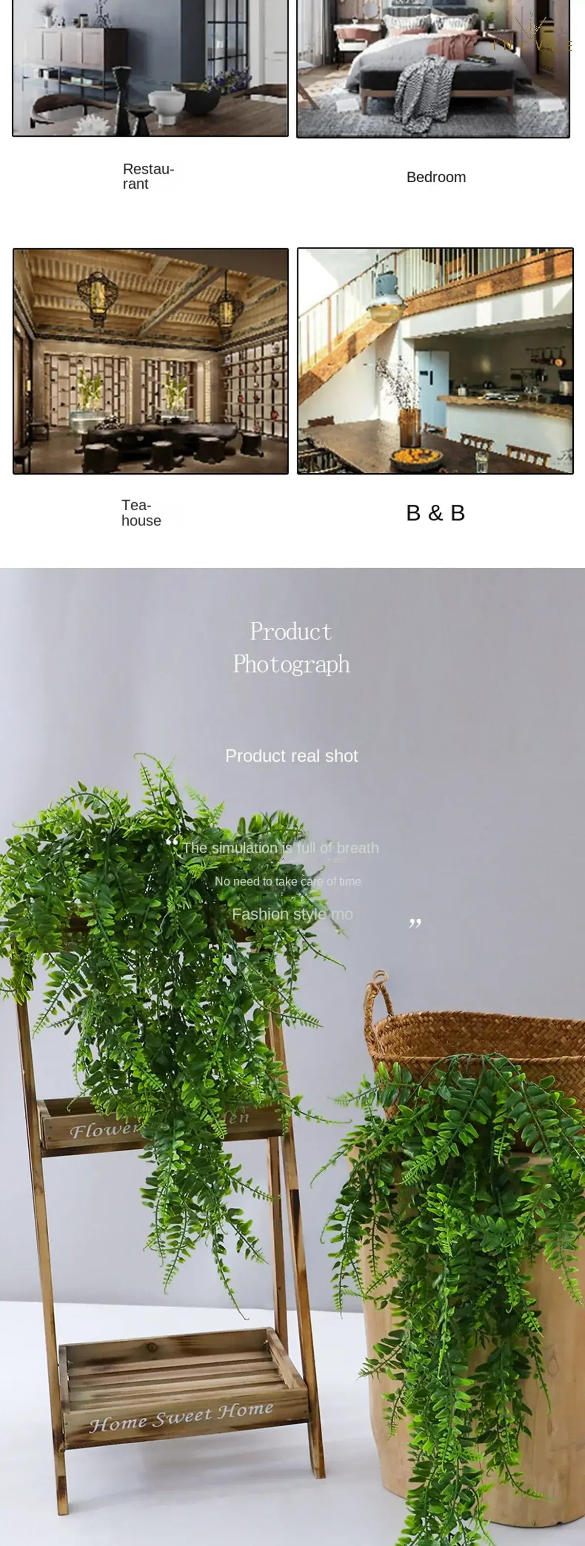 - Vertikale Hängedekoration: Konzipiert als rankende Ranke für Wandhaken, hohe Regale und Hängekörbe.