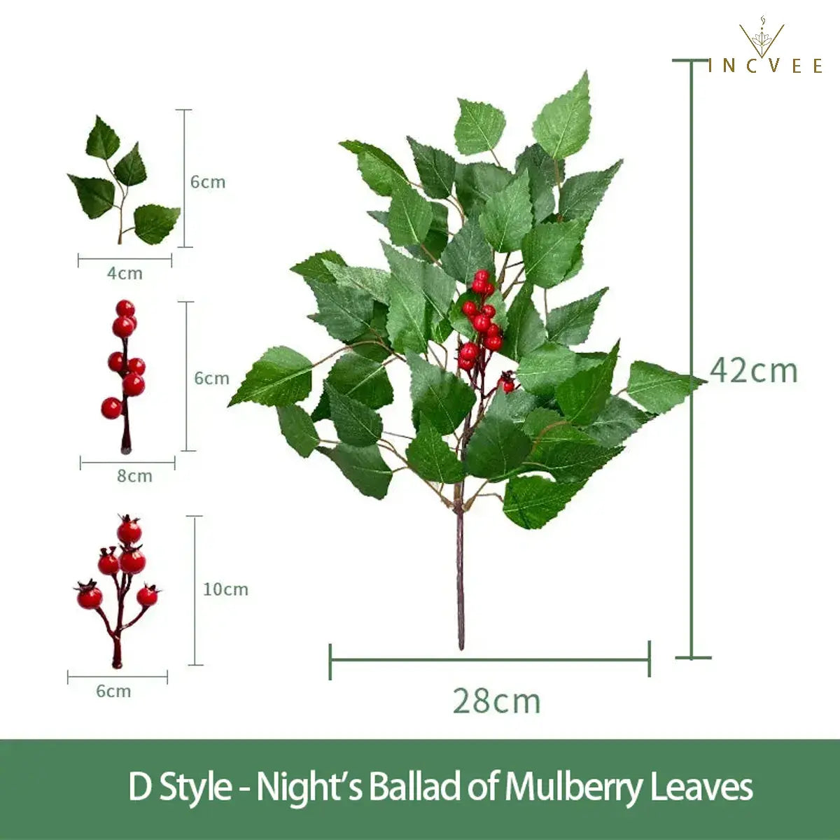 Pflanzenname: Ficus / Eukalyptus / Maulbeere / Wassermelone / Süßkartoffel / Begonie / Apfel / Ulmenblätter (Künstliches Grün)