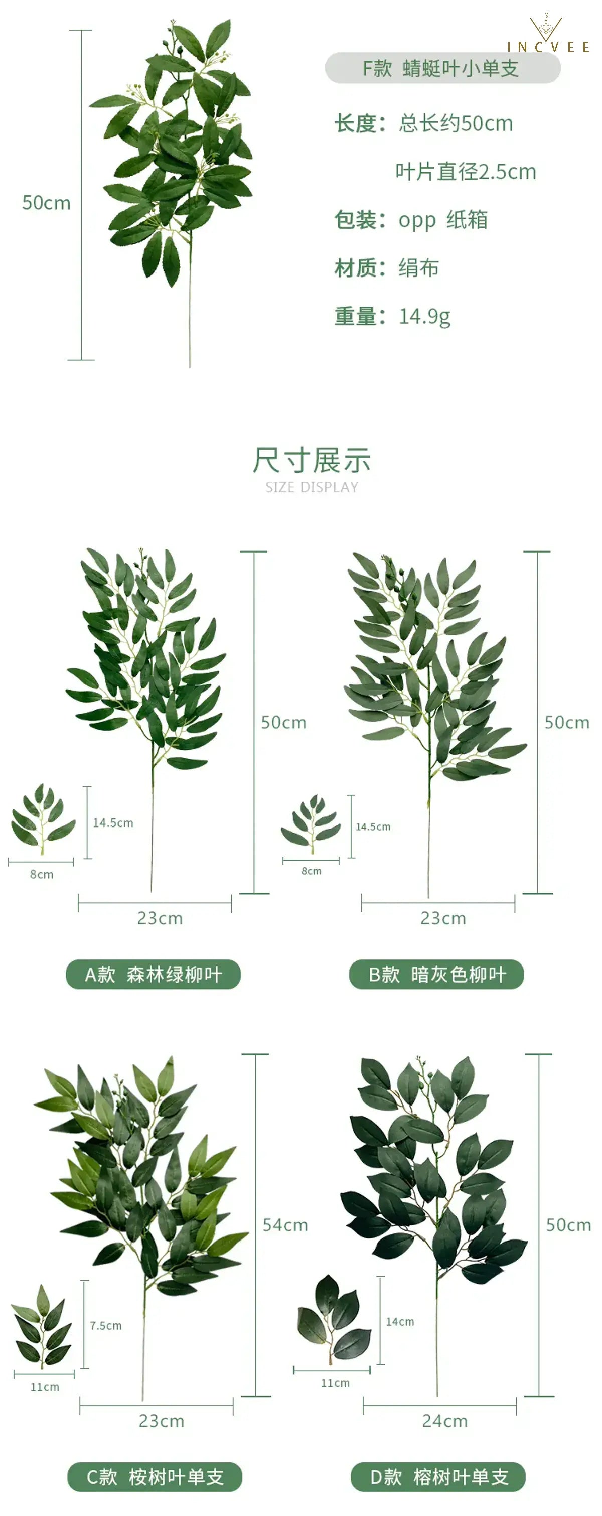 Pflanzenname: Bambus / Weide / Pfirsich / Libellenblätter (Künstliches Grün)