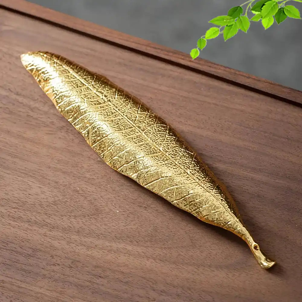 - Design élégant : Fabriqué en alliage de zinc de haute qualité, il a la forme d'une feuille dorée aux nervures délicates pour un look serein d'inspiration zen.