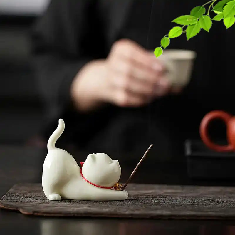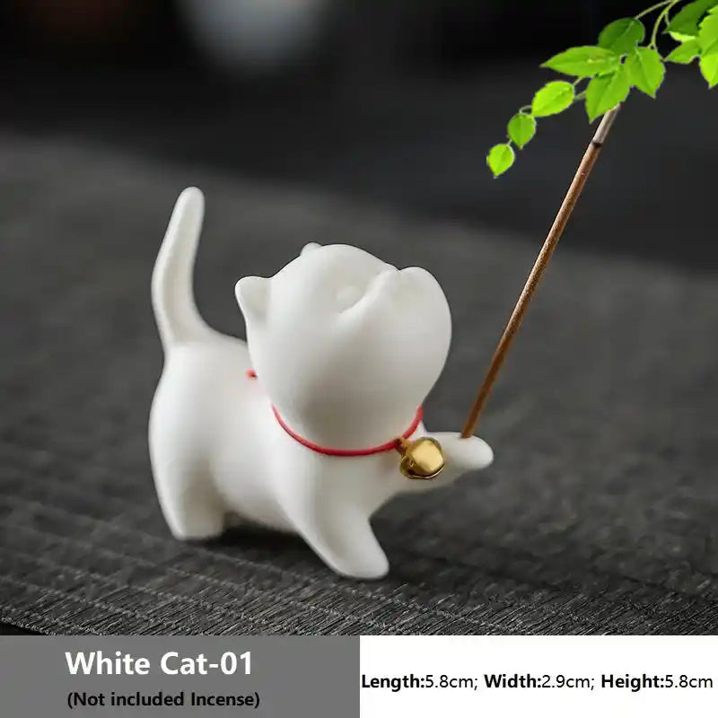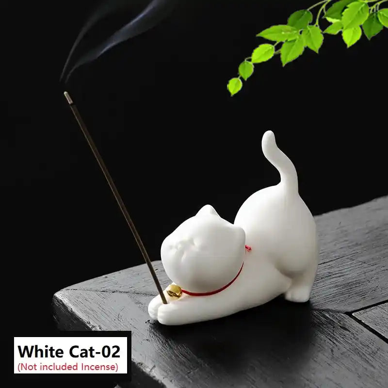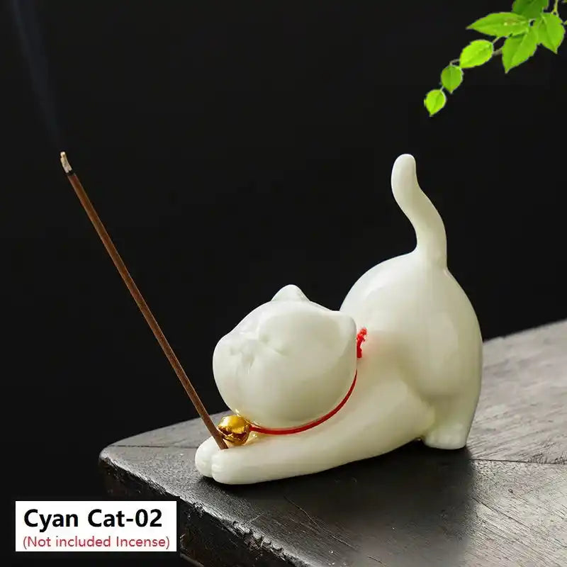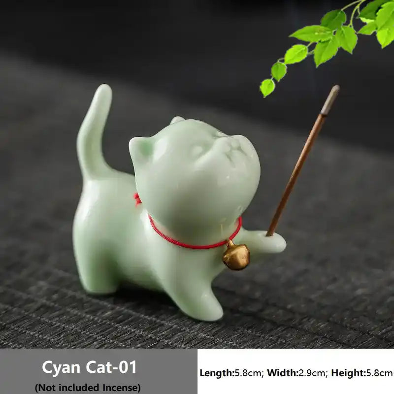 Charming Cat Design: This cute, handmade ceramic cat incense holder adds a playful and serene touch to your space, available in three adorable cat shapes (white and cyan colors).