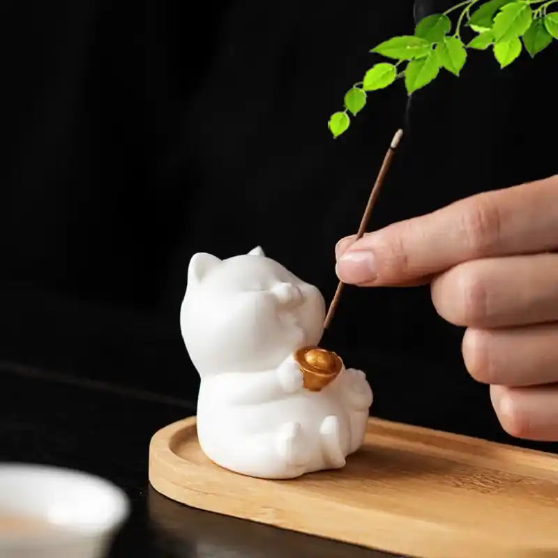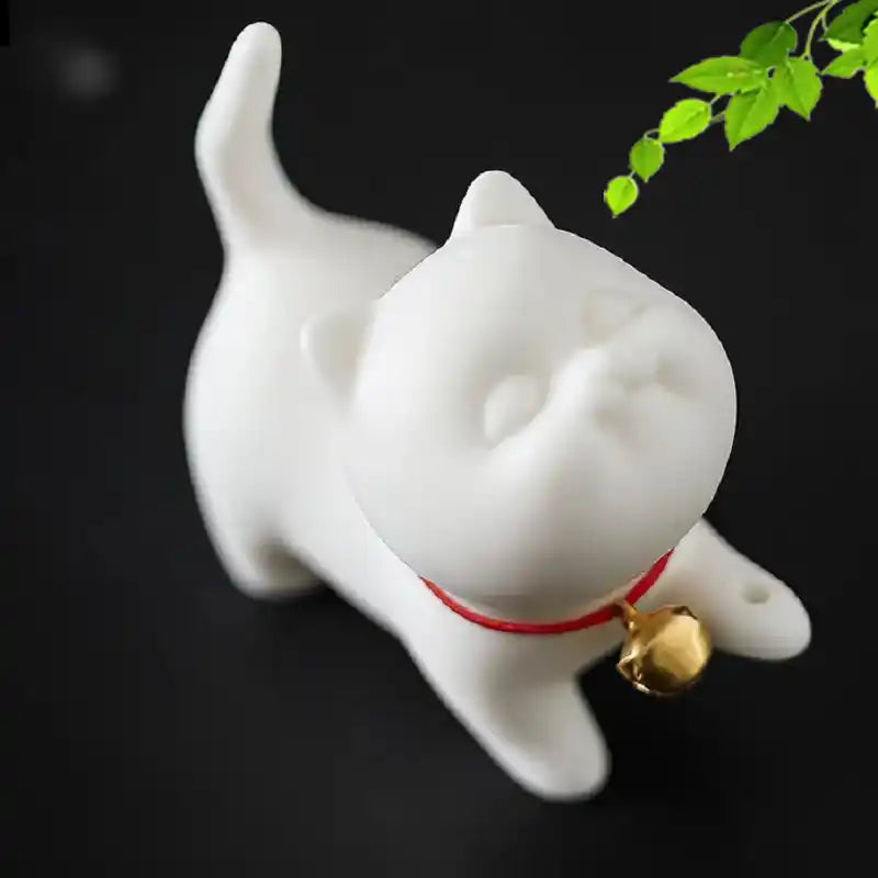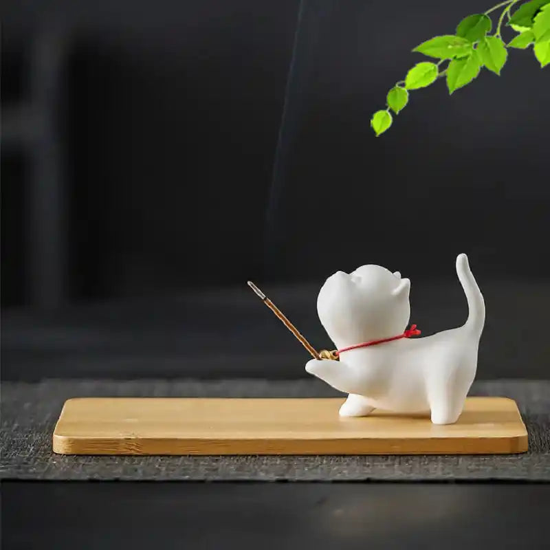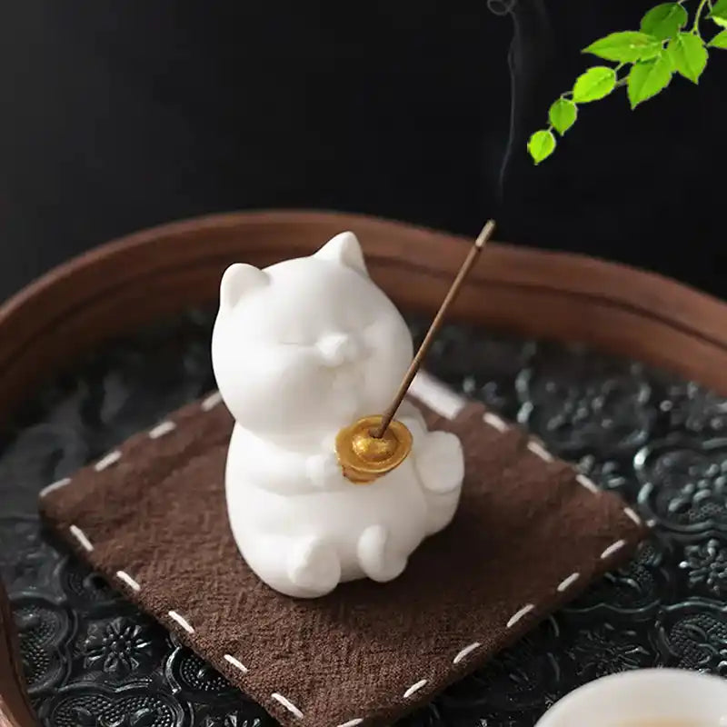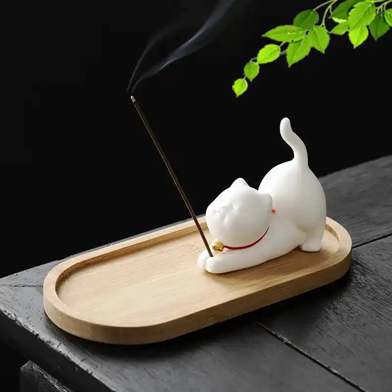 Charming Cat Design: This cute, handmade ceramic cat incense holder adds a playful and serene touch to your space, available in three adorable cat shapes (white and cyan colors).