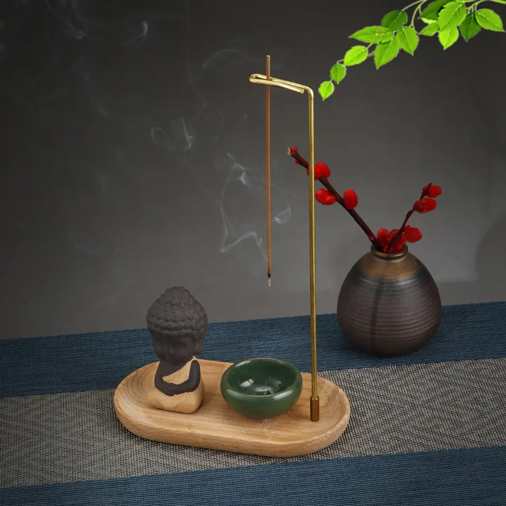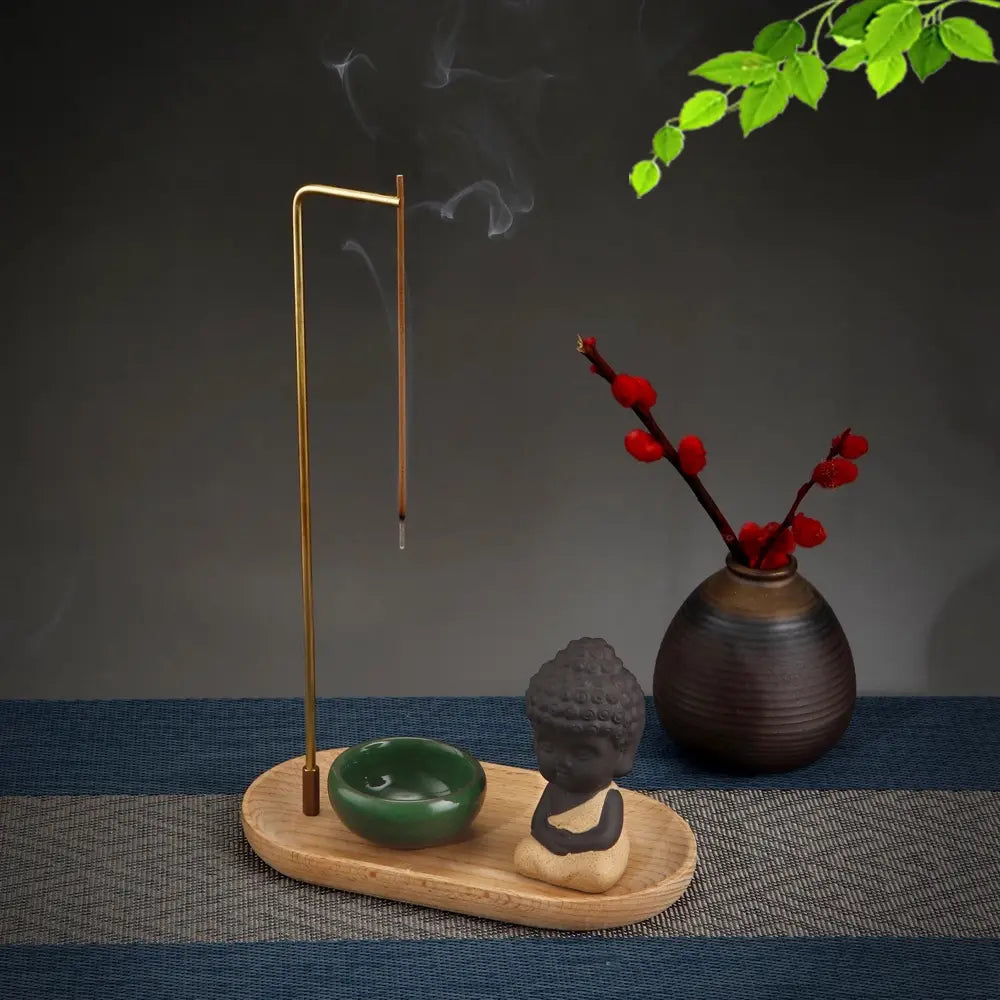 - Complete Incense Holder Set – This thoughtfully designed set includes a wooden base, brass incense holder, and a ceramic ashtray, offering everything you need for a peaceful incense experience.