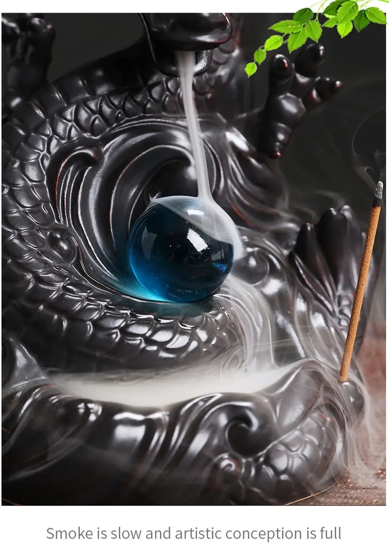 - Mesmerizing Smoke Cascade: The backflow smoke flows gracefully from the dragon’s mouth, cascading down like a waterfall, enveloping the crystal ball in a cloud of tranquility, offering a calming visual experience while enhancing your space’s positive energy.