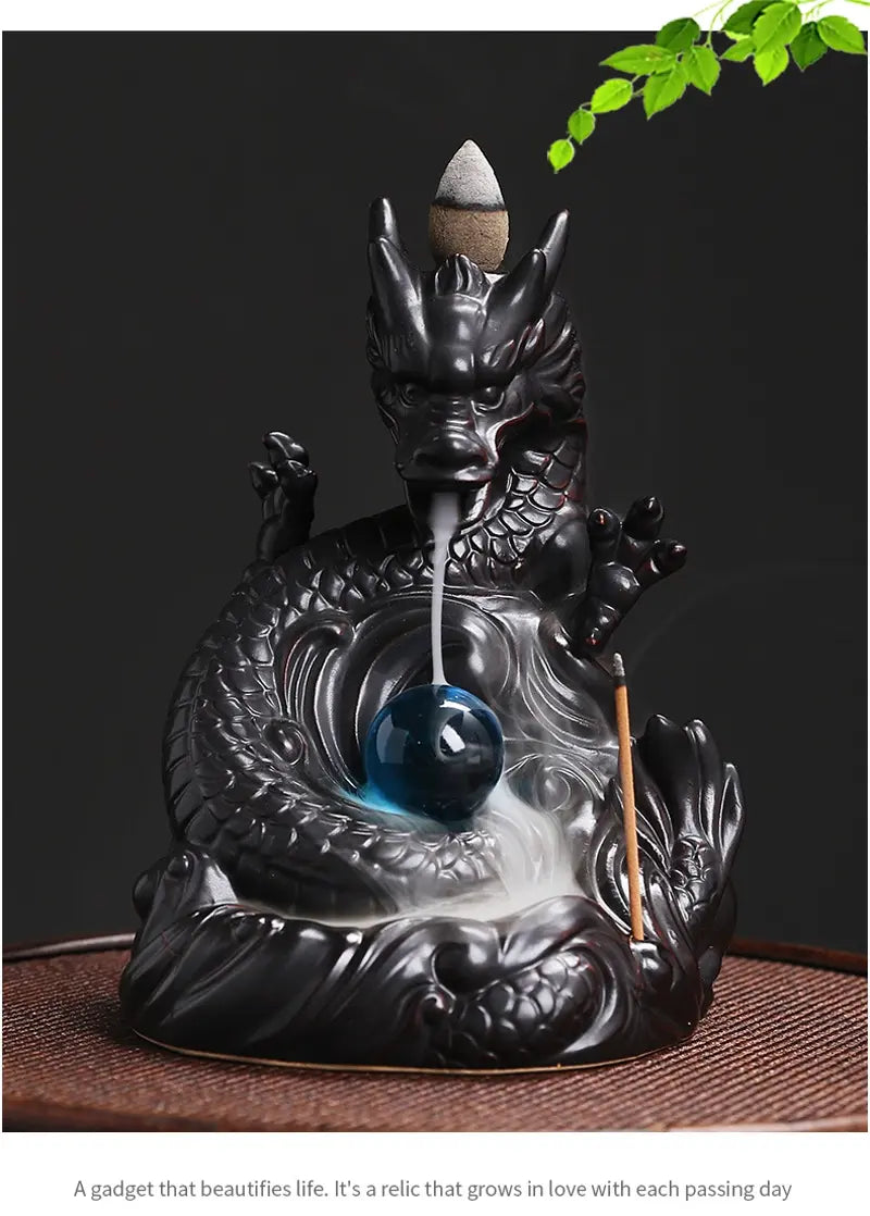 - Enhance Your Space with Regal Energy: The Dragon Ball Imperial Dragon incense burner adds a majestic and powerful presence to your home, with its swirling backflow smoke cascading over a crystal ball, perfect for meditation, spiritual practices, or simply enhancing the atmosphere of any room.