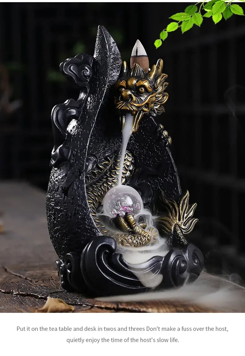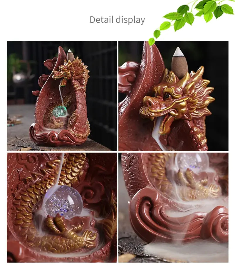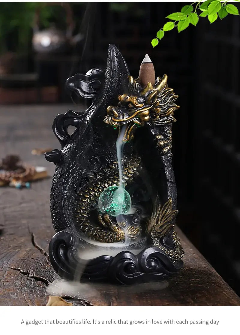 - Create a Soothing Sanctuary: The Dragon's Whisper incense burner transforms your space into a serene retreat, with its cascading backflow smoke and gentle LED glow, perfect for meditation, relaxation, or enhancing the ambiance of your living room or office.