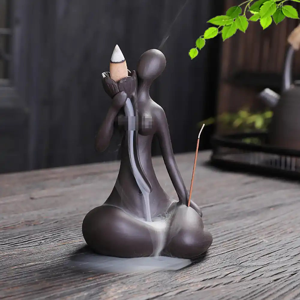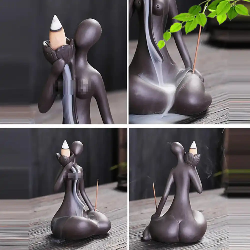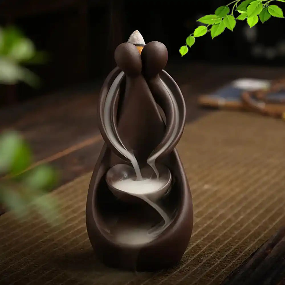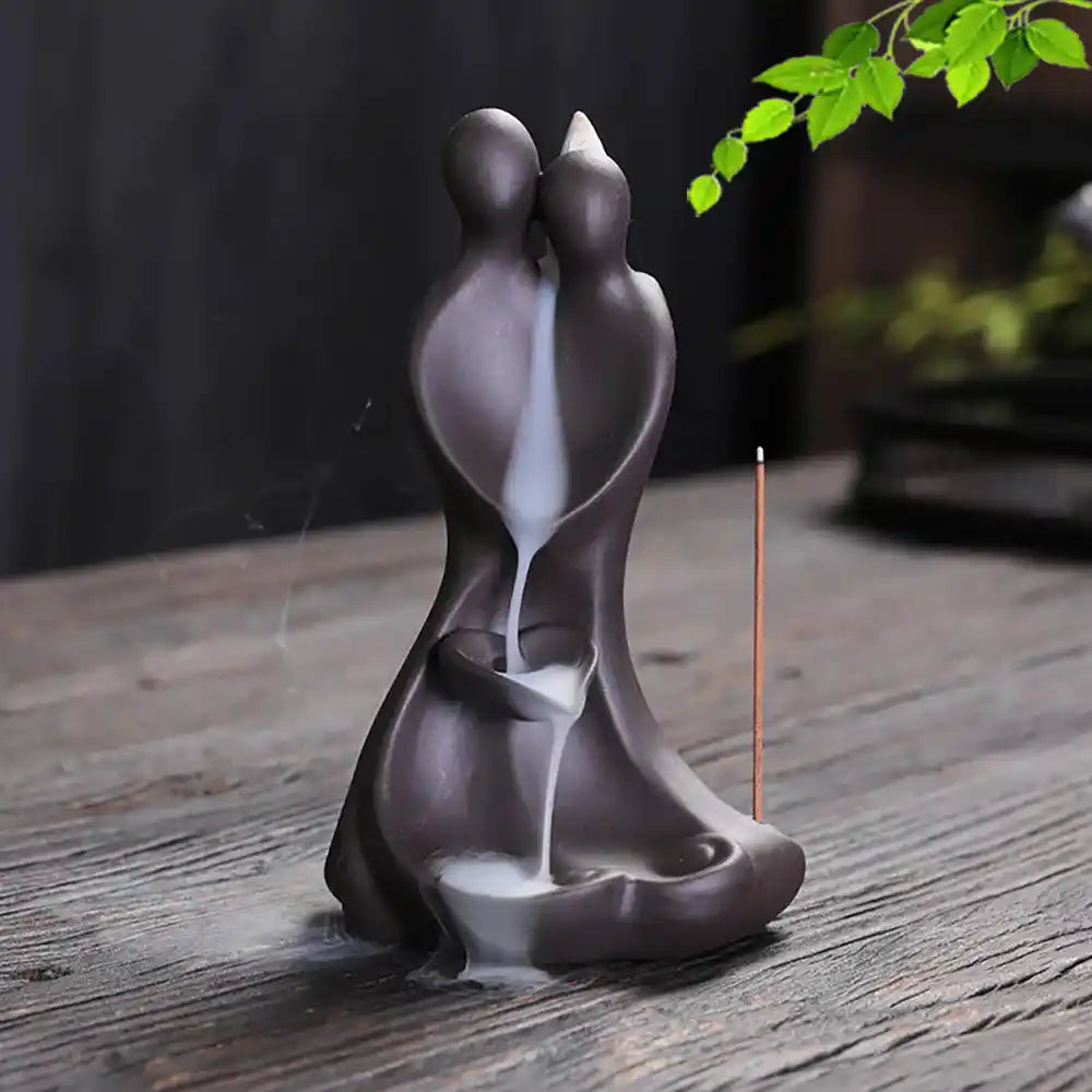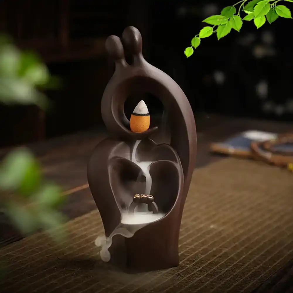 Captivating Backflow Effect: When used with backflow incense cones, the smoke gracefully flows between the intertwined figures, creating a mesmerizing waterfall effect.