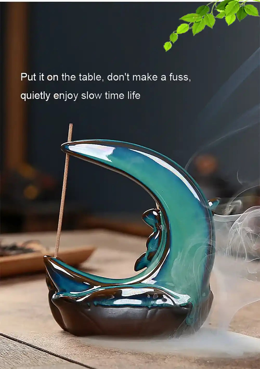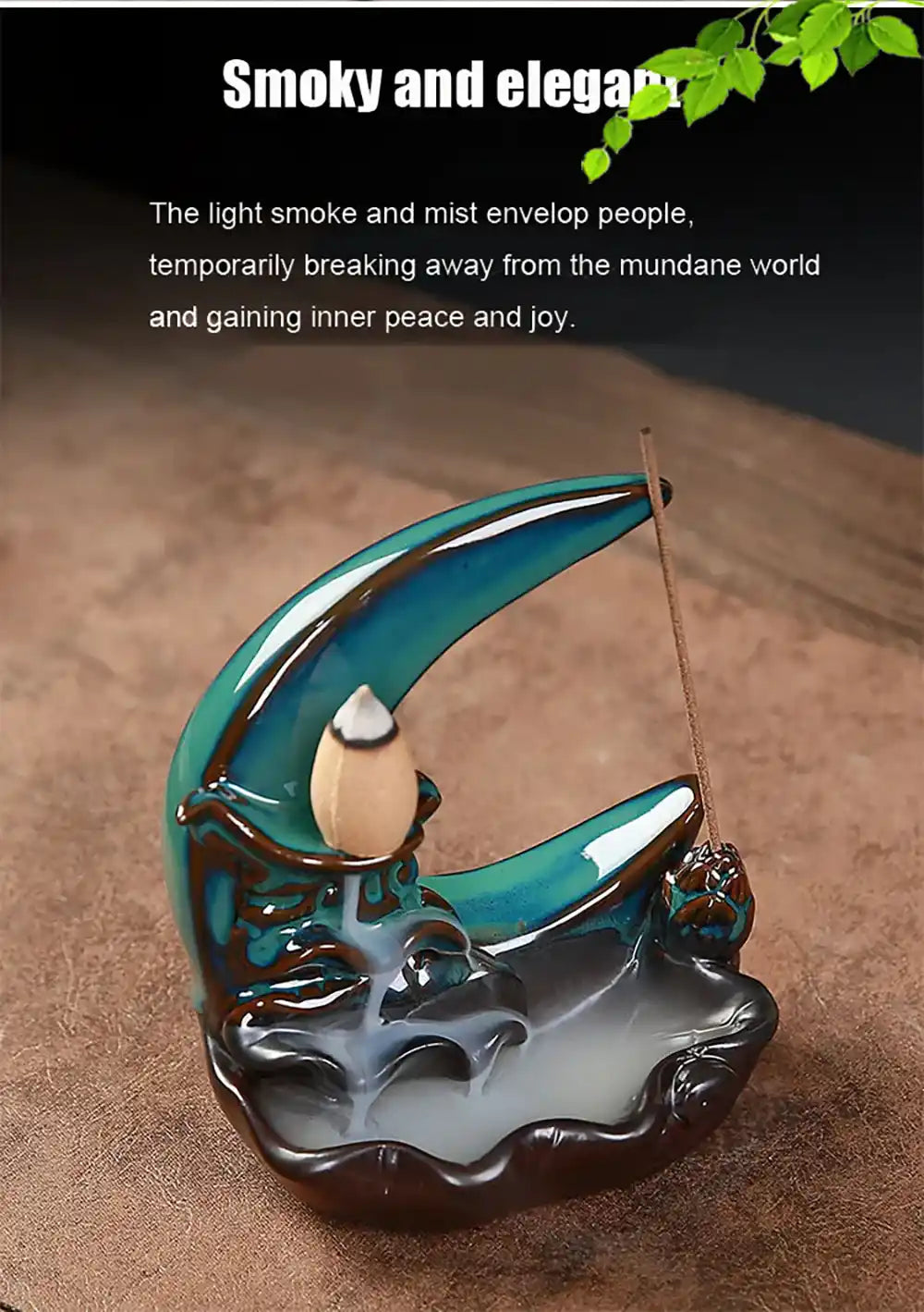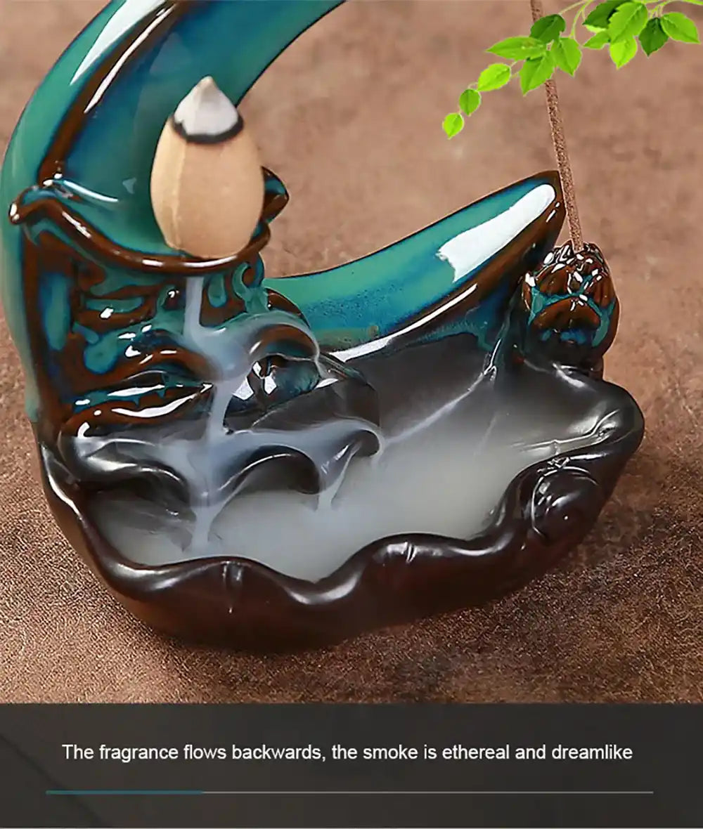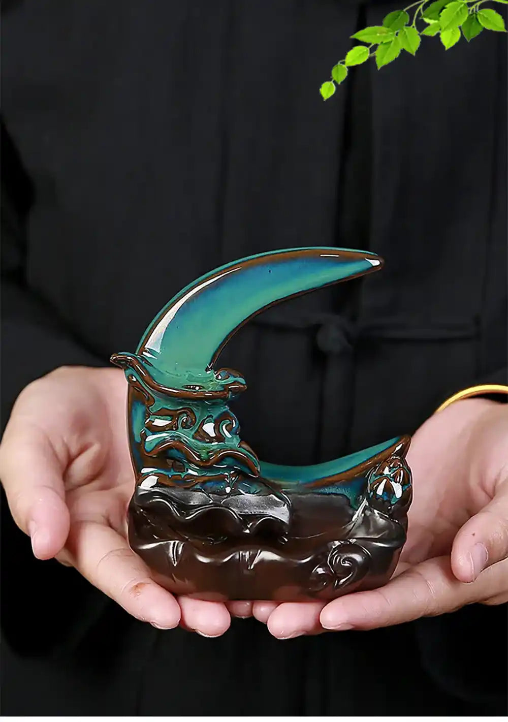 Product Series: Moonlight In Lotus Pond Blue Ceramic Backflow Incense Burner