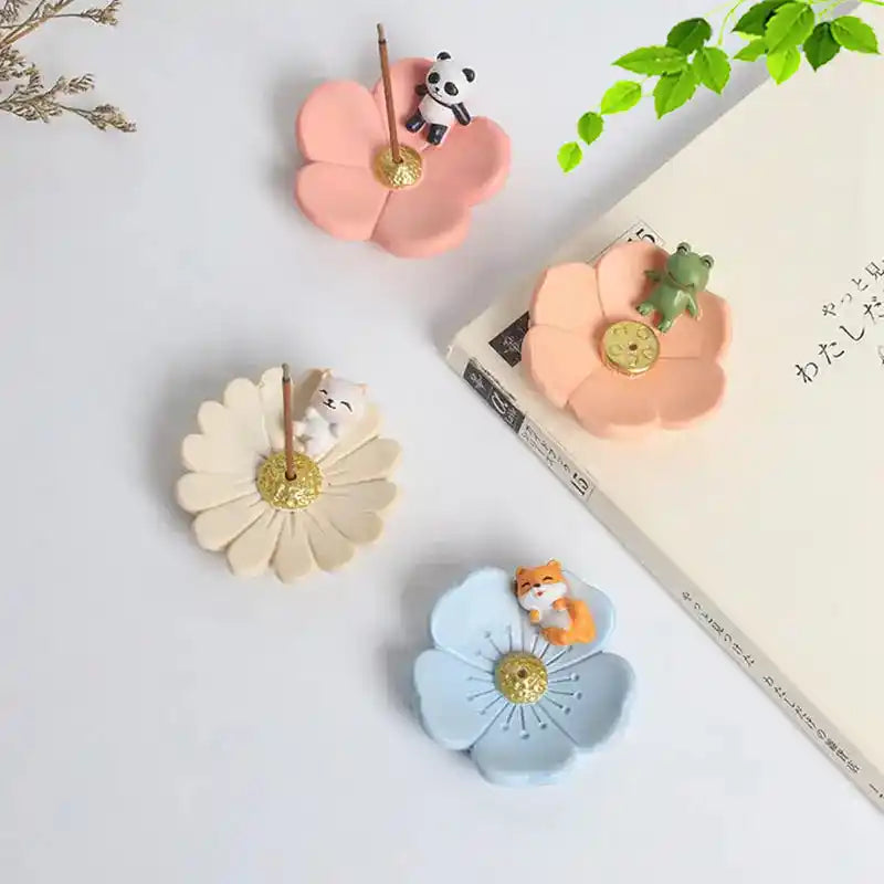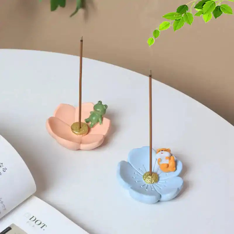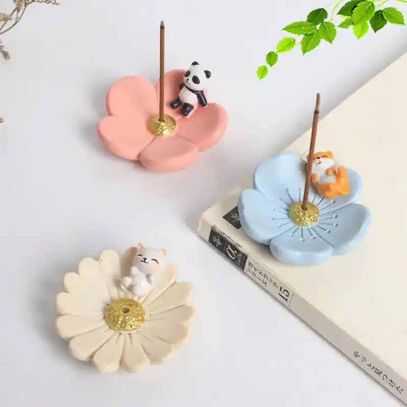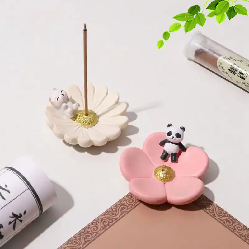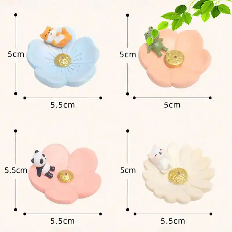 Product Name: Japanese Style Resin Cherry Blossom Sakura Plate Incense Holder with Cute Animal