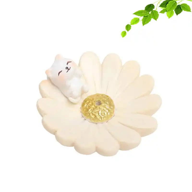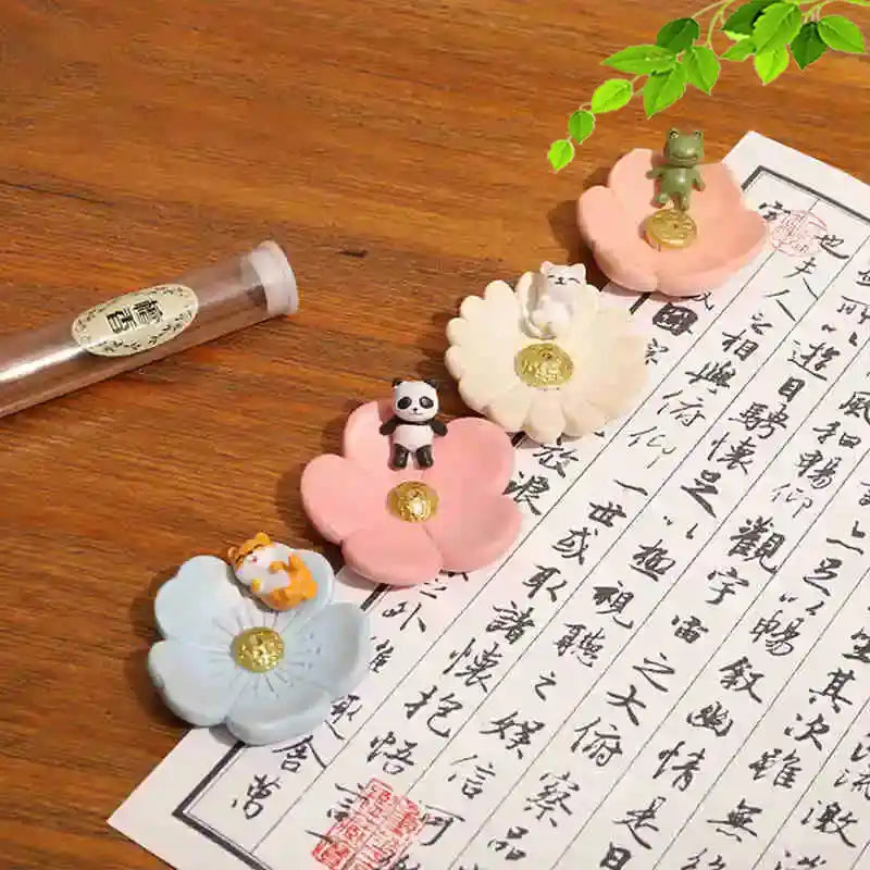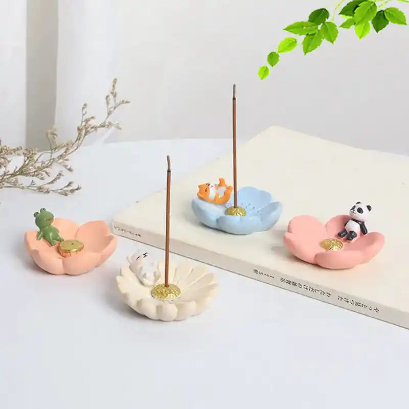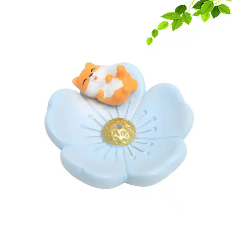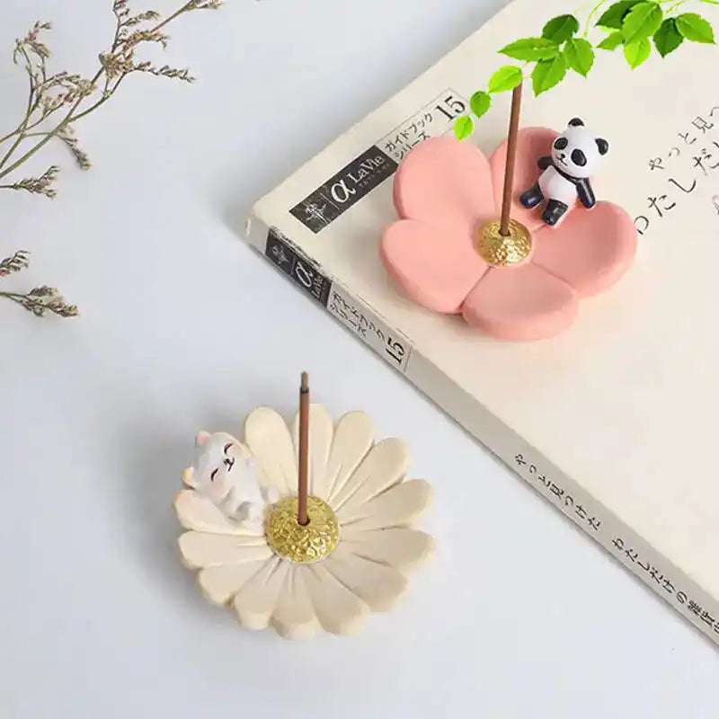 Product Name: Japanese Style Resin Cherry Blossom Sakura Plate Incense Holder with Cute Animal