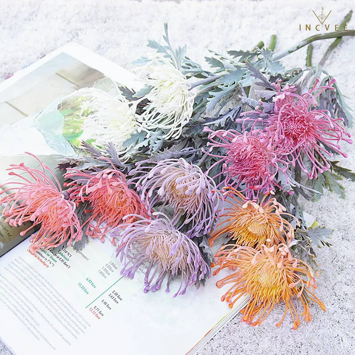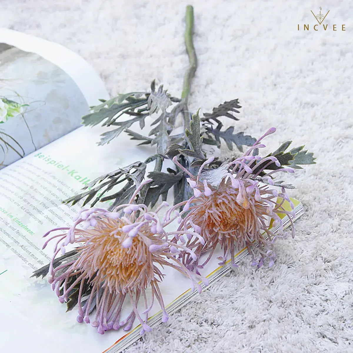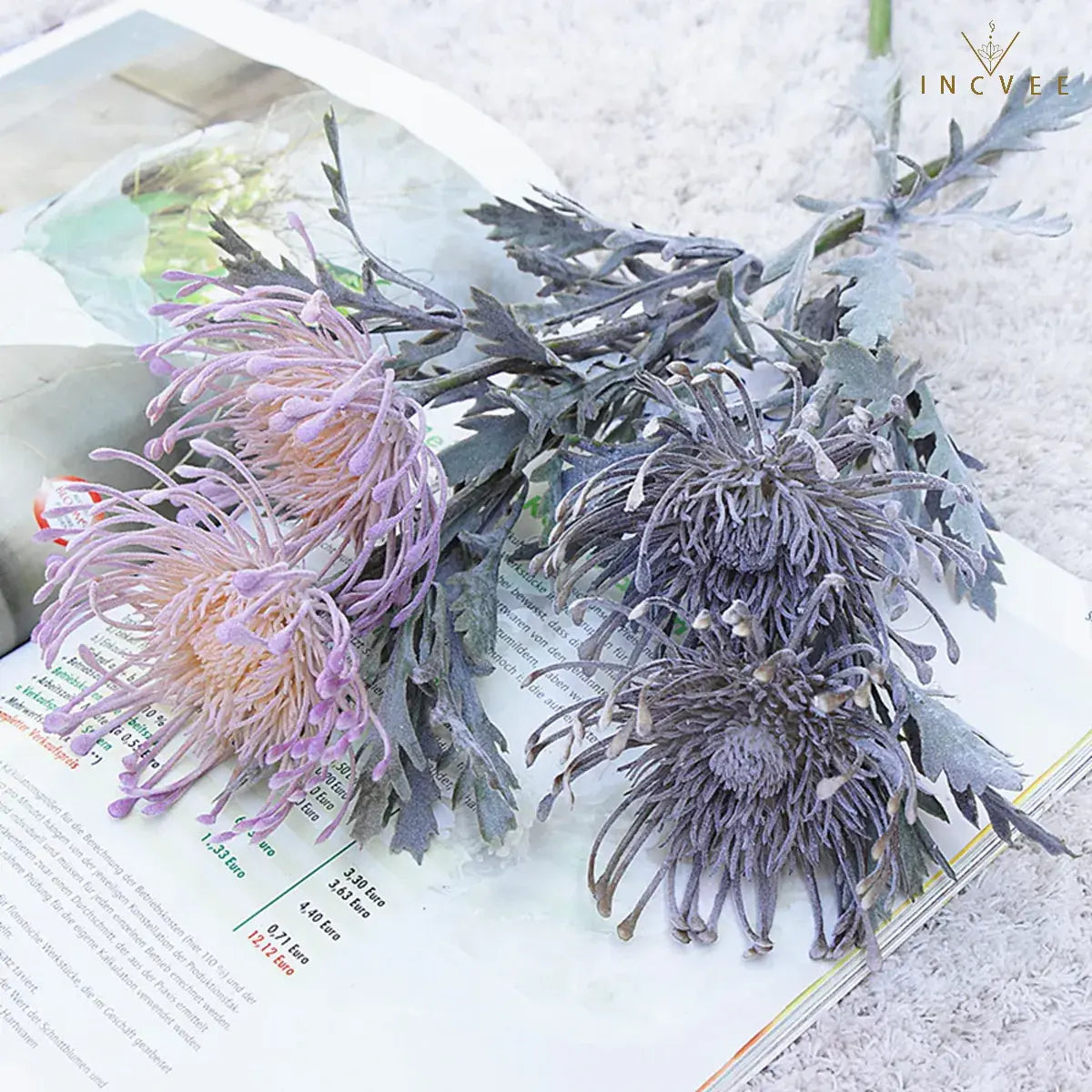 Realistic Crab Claw Pincushion Flower brings a Faux Dried/Vintage look to vases and wedding decor. 2 heads with flocked frost texture in 6 colors, finished to stay polished with zero watering.