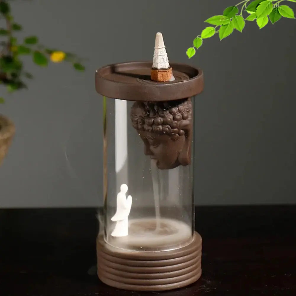 Product Series: Zen Ceramic Buddha Monk Backflow Incense Burner with Windproof Cover