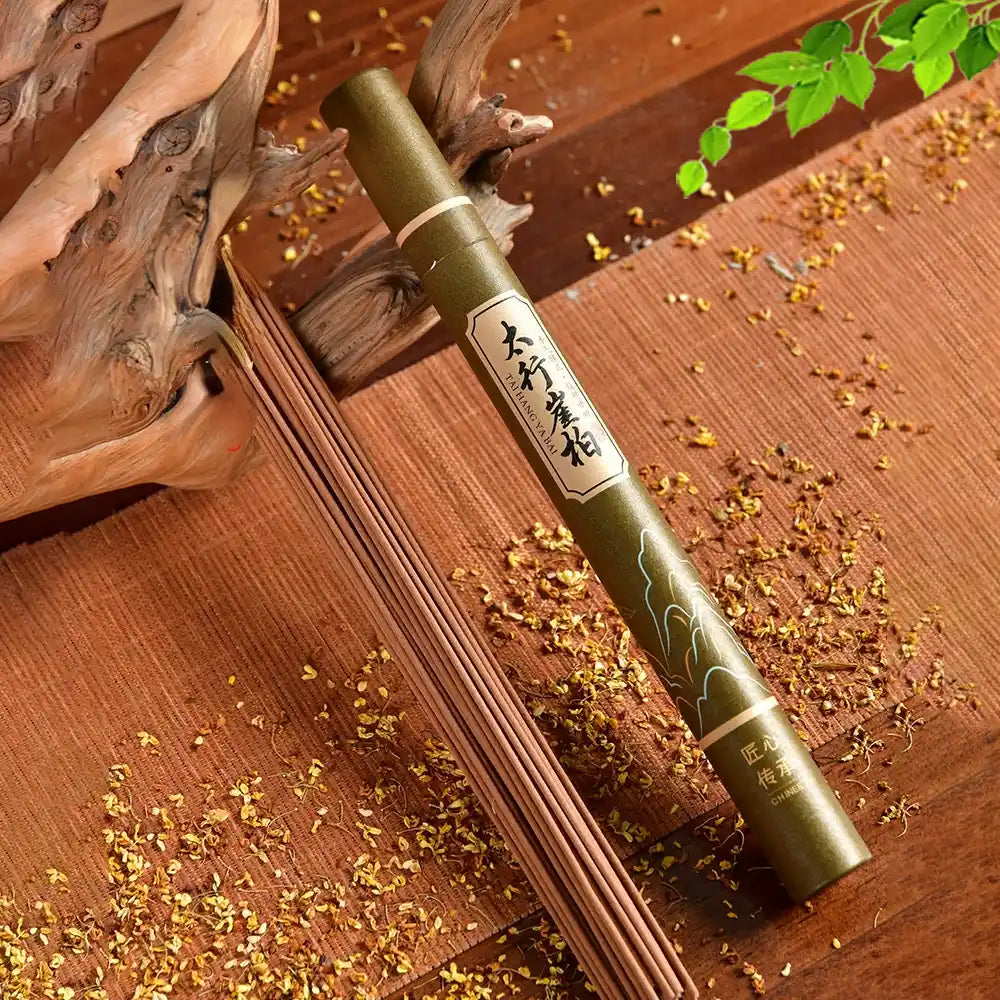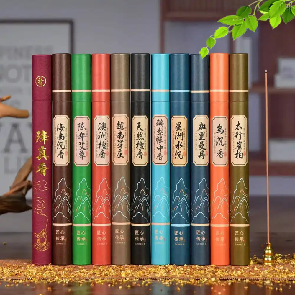 Classical Incense blends a unique combination of goose pear, agarwood, and sandalwood, creating a fragrant, sweet, and fruity aroma. The top notes are a fresh, sweet fruit scent, followed by a smooth blend of sandalwood and agarwood with creamy undertones. The lingering fragrance is an enchanting harmony of multiple scents, offering a calming and reflective atmosphere, perfect for meditation or creating a peaceful environment.